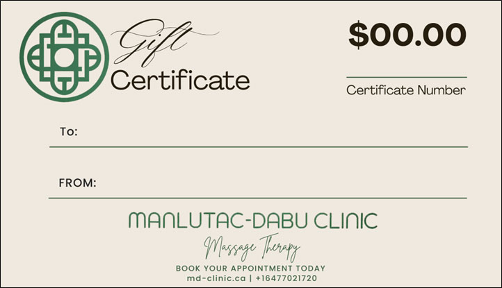 Manlutac-Dabu Clinic – Massage Therapy is a Canadian-owned practice committed to delivering effective, high-quality massage therapy in a safe, supportive, and caring environment. Our mission is to promote positive change, healthier living, and greater self-awareness for every client we serve.